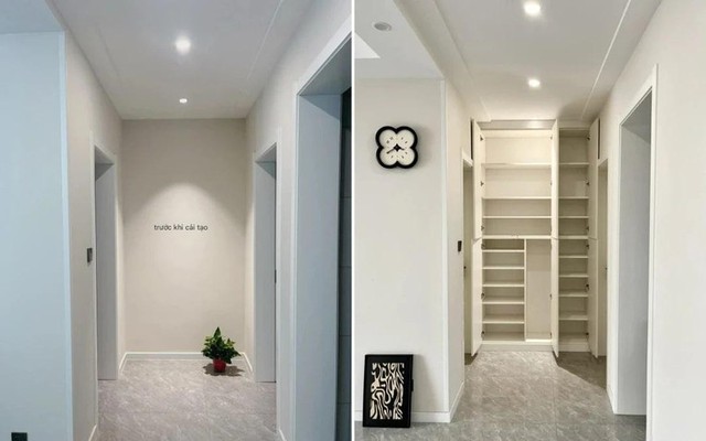 Hành lang là nơi bạn đi qua mỗi ngày nhưng hiếm khi được sử dụng hiệu quả. Phần lớn chỉ để trống, khiến diện tích bị lãng phí. Nếu hai bên tường không phải tường chịu lực, bạn hoàn toàn có thể thiết kế tủ âm tường hoặc hệ tủ cao kịch trần để tăng sức chứa lên đến vài mét vuông.