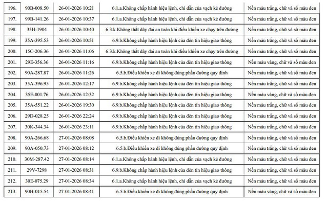 Theo Phòng Cảnh sát giao thông (CSGT) Công an tỉnh Ninh Bình, từ ngày 23/01/2026 đến ngày 27/01/2026, đã phát hiện 253 trường hợp phương tiện vi phạm.