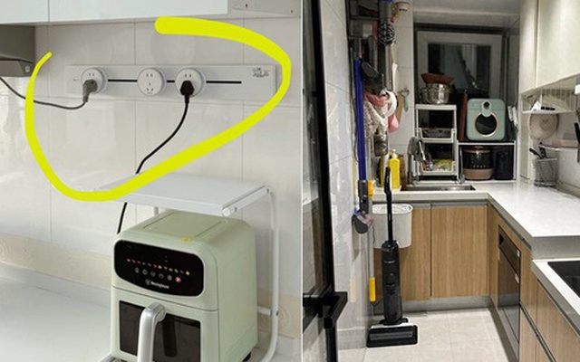 Lúc mới lắp, ai cũng nghĩ ổ cắm ray thật tiện - muốn cắm đâu thì trượt đến đó. Nhưng thực tế, thiết bị nhà bếp hầu như không bao giờ di chuyển, nên tính năng “trượt” vô dụng. Thêm nữa, các dây cắm dày đặc khiến khu bếp rối mắt. Nút xoay bằng tay còn dễ dính dầu mỡ, trơn trượt, khó vệ sinh.
