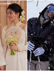 "Tiểu Vy đứng trước, tôi phải ôm từ đằng sau nhưng chỉ dám ôm xa xa, đứng như hai tượng gỗ, nói kiểu “đây anh đây” vậy thôi, trông không hề giống một cặp vợ chồng", bạn trai kém 11 tuổi của Lệ Quyên chia sẻ.