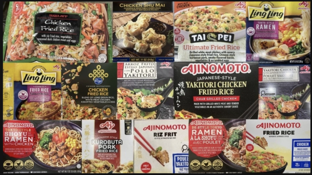 Các mặt hàng liên quan gồm nhiều loại cơm chiên gà, cơm chiên thịt heo, mì ramen và há cảo đông lạnh, thuộc các thương hiệu như Ajinomoto, Kroger, Ling Ling, Tai Pei và Trader Joe's. Một số sản phẩm trong số này cũng được xuất khẩu sang Canada và Mexico.