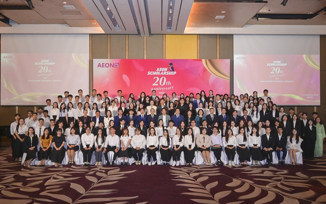 Tối 22.11, Lễ trao Học bổng AEON đã được tổ chức tại Hà Nội với sự phối hợp giữa AEON Việt Nam và các trường Đại học, dưới sự ủy thác của Quỹ AEON 1%. Sự kiện năm nay đồng thời đánh dấu 20 năm chương trình học bổng AEON 1%, với sự tham dự của các cựu sinh viên từng nhận học bổng.