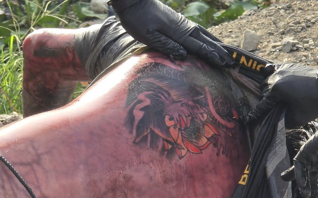 Ai biết thông tin liên quan thi thể nam có hình xăm cá chép bên hoa sen, liên hệ ngay công an số 0937.349.345