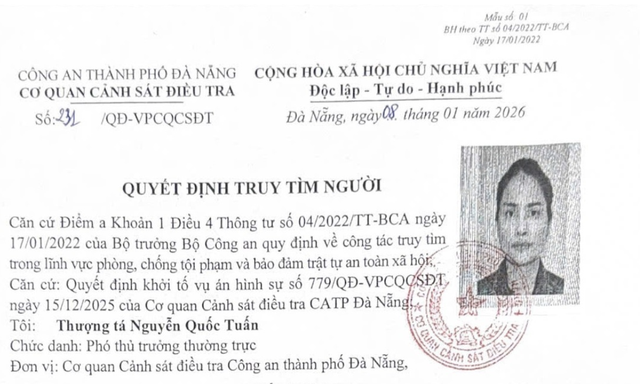 Công an TP Đà Nẵng đã ra quyết định truy tìm Bùi Thị Kim Na, đối tượng liên quan đường dây lừa đảo tiền ảo đa cấp chiếm đoạt khoảng 2.000 tỷ đồng.