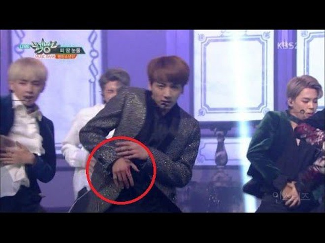 Jungkook tuy là thành viên nhỏ tuổi nhất BTS nhưng bản lĩnh sân khấu và thái độ chuyên nghiệp của anh chẳng thua kém ai. Trong một lần biểu diễn ca khúc "Blood, Sweat & Tears", tay của Jungkook chẳng may bị thương, chảy máu đầm đìa đến mức có thể nhìn thấy qua màn hình. Thế nhưng nam idol không hề để ý tới vết thương của mình, anh vẫn giữ biểu cảm bình tĩnh, trình diễn hết mình cho đến những phút cuối cùng.