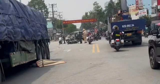 Cú va chạm khiến N. ngã xuống đường, bị bánh xe đầu kéo chèn qua người, tử vong tại chỗ. Chứng kiến hiện trường đau lòng, nhiều người dân không cầm được nước mắt.