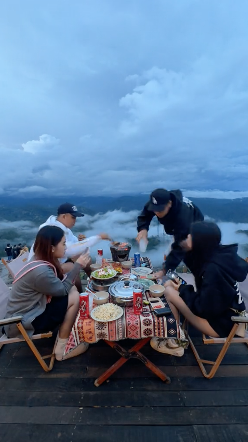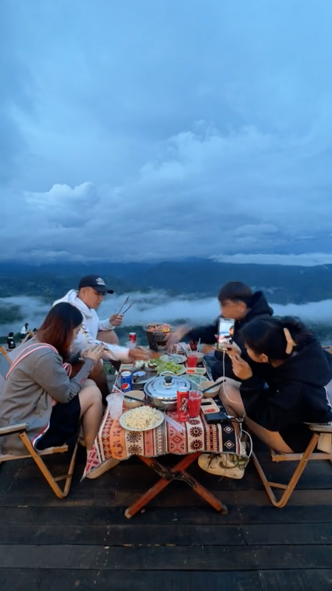 Đầu tư hơn thì có thể là một bữa nướng hoặc lẩu đơn giản giữa bồng bềnh mây trời Đà Lạt (Ảnh: TikTok @tieucuong111)