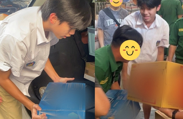 Subeo vừa đi học về đã nhanh chóng mua đồ, tới điểm tiếp nhận đồ cứu trợ ở TP. HCM.