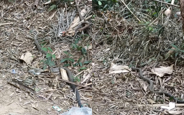 Hình ảnh con rắn hổ mang chúa bò vào nhà rẫy của người dân