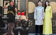 Đỗ Mỹ Linh khoe khoảnh khắc chồng và con gái trong phòng gym riêng