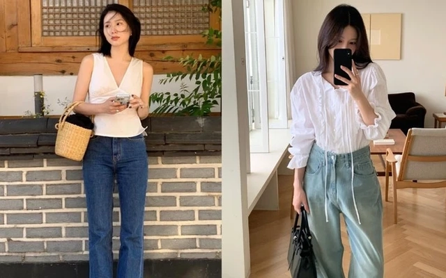Một chiếc blouse trắng dáng rộng sơ vin nhẹ vào quần jeans cạp cao có thể giúp vóc dáng trông gọn gàng và cao ráo hơn. Nếu muốn tạo cảm giác thanh lịch, bạn có thể chọn jeans ống đứng hoặc ống suông. Ngược lại, jeans ống loe nhẹ sẽ mang lại hơi thở cổ điển, rất hợp với những chiếc blouse có chi tiết vintage.