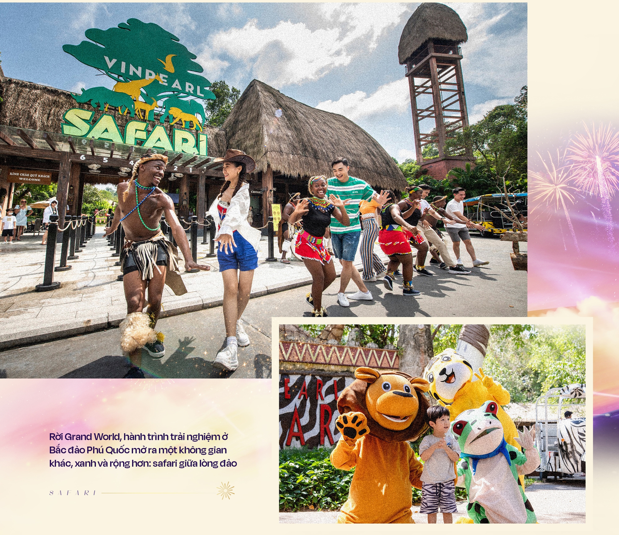 Rời Grand World, hành trình trải nghiệm ở Bắc đảo Phú Quốc mở ra một không gian khác, xanh và rộng hơn: safari giữa lòng đảo. Tại Vinpearl Safari, trải nghiệm không dừng ở việc ngắm nhìn. Ngồi trên những chuyến xe bus chuyên dụng len lỏi qua khu vực bán hoang dã, du khách có dịp quan sát các loài động vật sinh sống trong không gian rộng lớn, ở khoảng cách gần hơn nhưng vẫn giữ được sự an toàn cần thiết. Với nhiều gia đình, khoảnh khắc cả nhà cùng nhìn qua ô cửa kính, dõi theo những chuyển động rất thật của thế giới tự nhiên, trở thành một điểm nhấn đáng nhớ trong hành trình khám phá Bắc đảo.