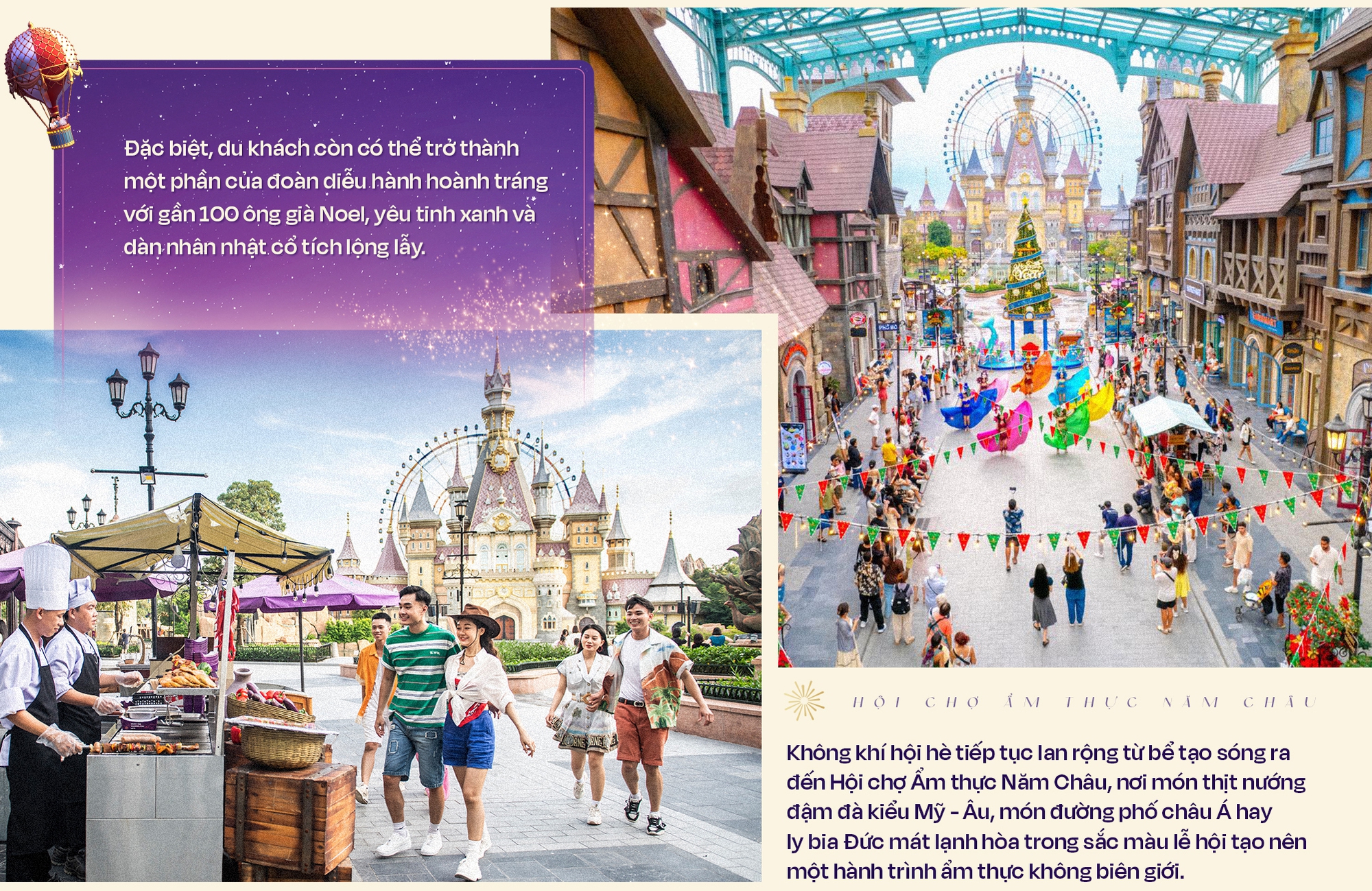 Khi nắng dịu dần, khu bể tạo sóng trở thành điểm hẹn sôi nổi với bọt tuyết trắng phủ kín mặt nước và những giai điệu Noel quen thuộc. Giữa khung cảnh Giáng sinh miền nhiệt đới ấy, cảm giác vui chơi được nối dài, tạo nên một buổi chiều trọn vẹn trước khi bước sang hành trình buổi tối.