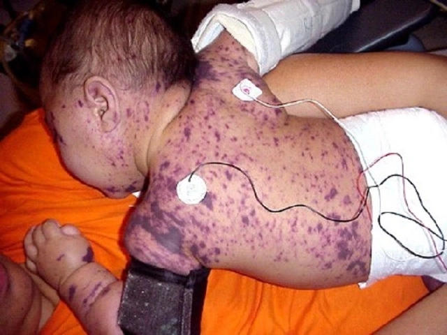 Từ ban bùng phát trên cơ thể bệnh nhi mắc não mô cầu (ảnh minh họa)