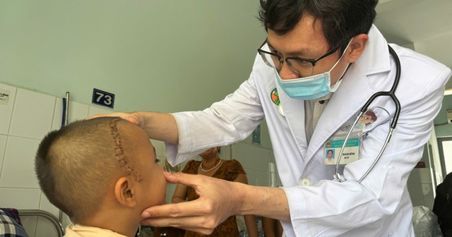 Bác sĩ thăm khám cho bé sau phẫu thuật