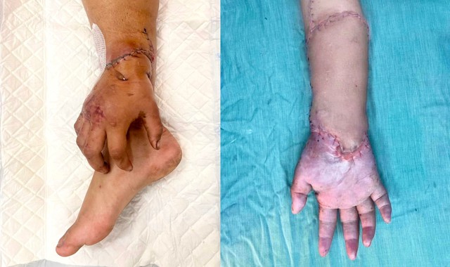 Trước nguyện vọng đó, các bác sĩ thống nhất đưa ra giải pháp khó khăn nhưng mang tính nhân văn cao: Ghép tạm bàn tay đứt lìa vào cổ chân phải, kèm nối mạch vi phẫu để duy trì tuần hoàn máu. Đồng thời, phần đầu gần cẳng tay được che phủ bằng vạt da ngẫu nhiên vùng bụng nhằm bảo tồn mô.