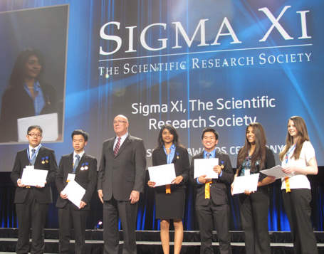 Kevin Anh Nguyễn (thứ ba từ phải sang) giành giải Nhì của Hiệp hội nghiên cứu khoa học SIGMA XI, trị giá 1.500 USD.