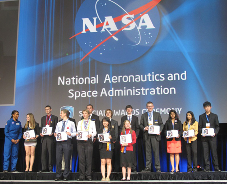 Vũ Mai Anh (hàng trên, thứ hai từ phải sang), đoạt giải Nhì của Cơ quan Hàng không và Vũ trụ Mỹ (NASA), trị giá 2.000 USD.