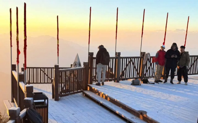Theo đại diện Fansipan Legend - đơn vị vận hành khai thác du du lịch Fansipan (phường Sa Pa, tỉnh Lào Cai), từ đêm 24/12 đến sáng 25/12, tại khu vực cột cờ trên đỉnh Fansipan, nhiệt độ xuống đến 1 độ C, khu vực bất ngờ có băng tuyết phủ kín. "Hiện tượng băng phủ trắng đỉnh Fansipan diễn ra khá thường xuyên. Nếu không khí lạnh tiếp tục tăng cường, khả năng tuyết sẽ xuất hiện", vị đại diện cho biết.
