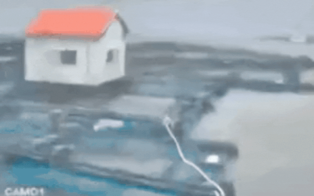 Bức ảnh được chụp vào ngày 5 tháng 10 năm 2025, cho thấy lượng mưa và sóng lớn trên vùng biển gần trung tâm thành phố Hải Khẩu, tỉnh Hải Nam, miền nam Trung Quốc.