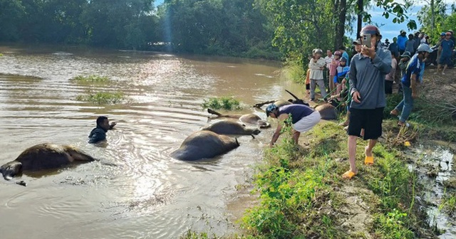 Nước đổ về nhanh, người dân không kịp đưa 23 con trâu lên nơi an toàn