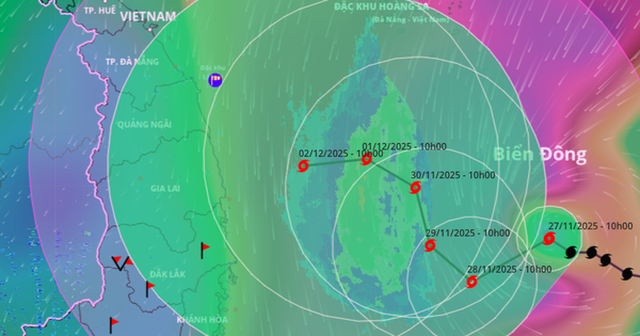 Theo Trung tâm Dự báo khí tượng thủy văn quốc gia, hồi 10 giờ ngày 27-11, vị trí tâm bão số 15 ở vào khoảng 13,1 độ Vĩ Bắc; 113,9 độ Kinh Đông, cách đảo Song Tử Tây khoảng 190 km về phía Bắc.