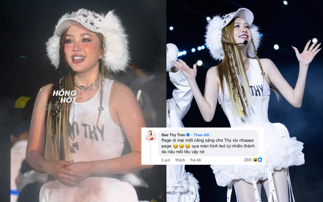 Cụ thể, dù nhận được nhiều lời khen từ cộng đồng mạng nhưng Bảo Thy lại không ưng vì ảnh qua màn hình led bị thiếu sáng, khiến cho da cô bị tối. Mỹ nhân sinh năm 1988 còn cho rằng việc chụp thiếu sáng cũng khiến layout makeup của mình bị thay đổi. "Page ơi mai mốt nâng sáng cho Thy xíu nha. Qua màn hình led tự dưng thành da nâu môi tều vậy nè" - Bảo Thy hài hước bình luận.