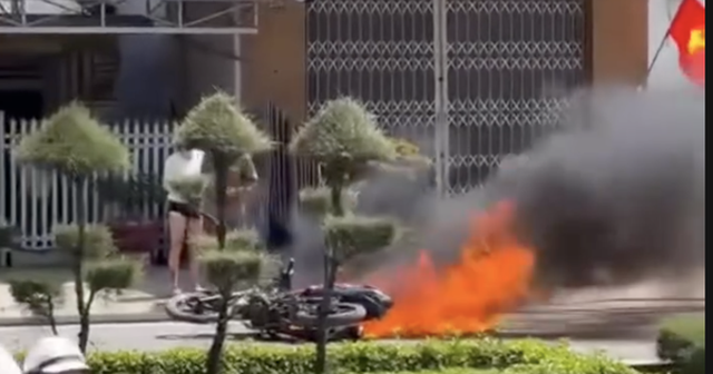 Sau khi xô đổ xe, đối tượng tự đốt xe
