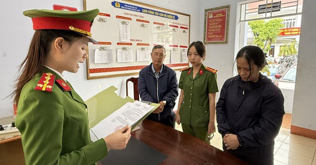 Cơ quan điều tra thi hành lệnh bắt Đoàn Uyên Thao (nữ áo khoác đen). Ảnh: Bộ Công an.