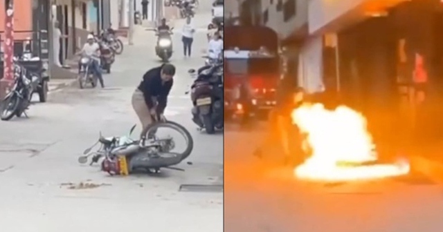 Một clip lan truyền trên mạng xã hội ghi lại khoảnh khắc một người phụ nữ ở San Roque, Antioquia, Colombia, đã đốt cháy chiếc xe máy của chồng sau khi phát hiện anh ta ngoại tình.
