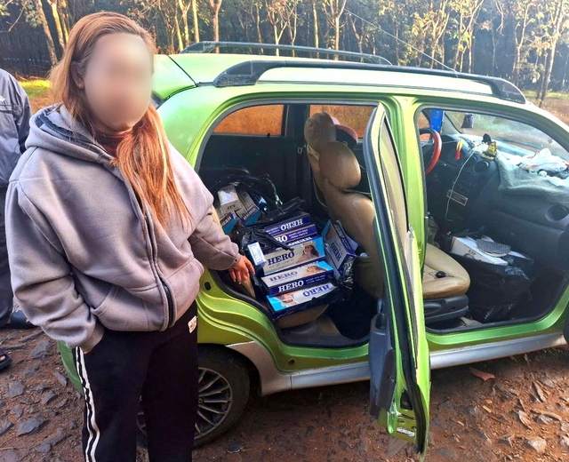 Tại hiện trường, người điều khiển xe được xác định là Nguyễn Thị Hồng Hoa. Kiểm tra bên trong phương tiện, lực lượng chức năng phát hiện và thu giữ 740 bao thuốc lá hiệu Hero và 90 bao hiệu Jet.