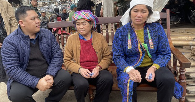 Lãnh đạo UBND xã Mường Giôn đến thăm hỏi, động viên gia đình các nạn nhân. Ảnh: TTXVN