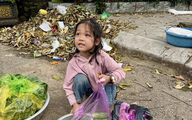 Bé gái mồ côi cha ngồi bán rau ở đường khiến nhiều người xúc động: Diễn biến không ngờ sau đó- Ảnh 1.