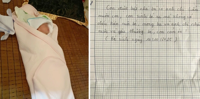 Bé sơ sinh bị bỏ rơi cùng bức thư để lại.