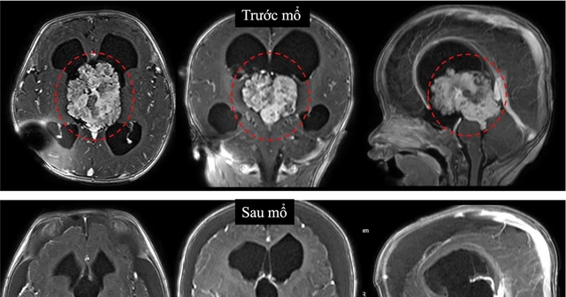 Theo phân tích của BS Huy, vị trí này đặc biệt nguy hiểm vì xung quanh là nhiều cấu trúc thần kinh và mạch máu quan trọng. Việc can thiệp phẫu thuật vì thế luôn tiềm ẩn rủi ro cao, nhất là với bệnh nhi còn quá nhỏ. Kết quả xét nghiệm mô bệnh học cho thấy đây là u đám rối mạch mạc không điển hình độ 2, một dạng u hiếm gặp của hệ thần kinh trung ương.