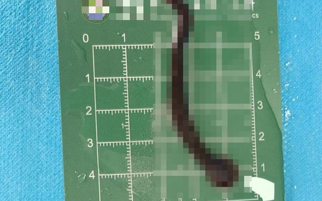 Bằng kẹp phẫu thuật chuyên dụng, các bác sĩ đã kẹp chính xác và lôi "thủ phạm" ra ngoài. Đó là một con đỉa rừng dài tới 8cm, vẫn còn đang ngọ nguậy bò trườn ngay khi vừa rời khỏi cơ thể bệnh nhi.
