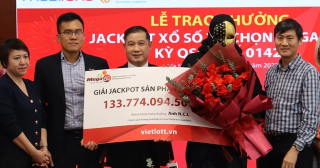 Anh N.C.L. nhận giải Jackpot Mega 6/45 trị giá hơn 133,7 tỷ đồng của Vietlott.