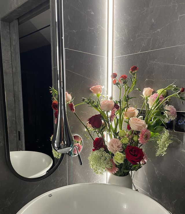 Trong một vlog, Trần Thành không quên tiết lộ khu vực phòng tắm trong căn hộ bạc tỷ của mình. Toàn bộ căn phòng đều mang tông màu xám - đen vô cùng sang xịn, các món đồ dùng như khăn tắm, thảm lau chân cũng ''tone-sur-tone'' với màu chủ đạo của căn nhà. Từ khu vực tắm bồn có thể nhìn ra bên ngoài giúp chủ nhân có thời gian thư giãn thoải mái và ''chill'' sau một ngày làm việc mệt mỏi.