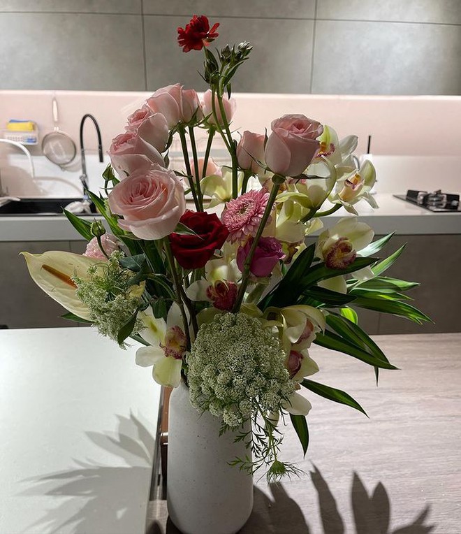 Trấn Thành không lựa chọn phương pháp tách biệt mà nối liền không gian phòng khách với nhà bếp giúp tạo cảm giác gần gũi hơn. Để căn nhà thêm sinh động, vợ chồng Trấn Thành còn trồng cây xanh, trưng những bình hoa nhỏ ở nhà bếp, phòng tắm, ban công và phòng ngủ của mình.