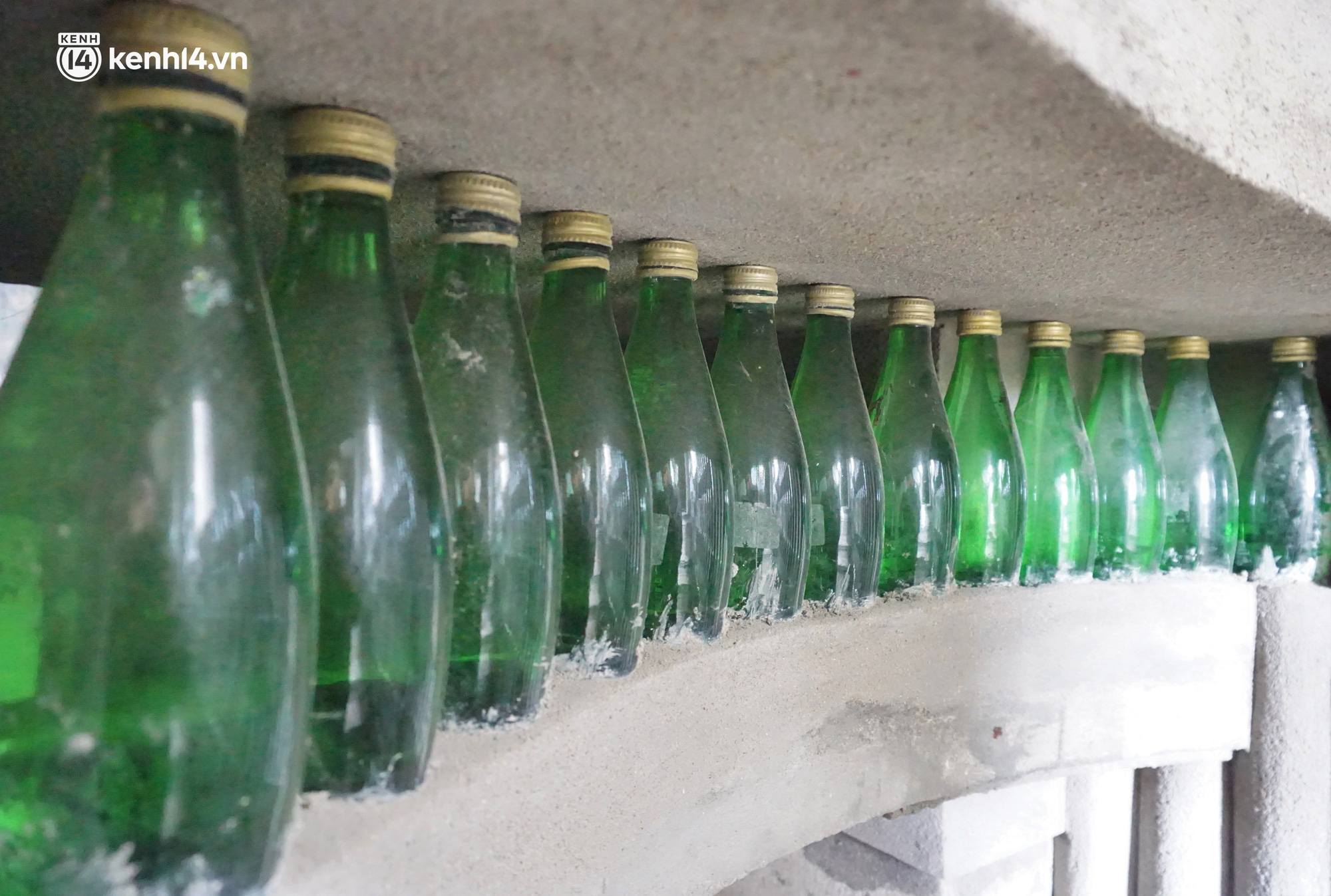 Trước khi dùng vỏ chai làm nhà, ông Linh rửa sạch chúng bằng xà phòng và đổ đầy nước vào trong rồi đậy nắp lại, những chai không còn nắp thì dùng xốp bịt kín