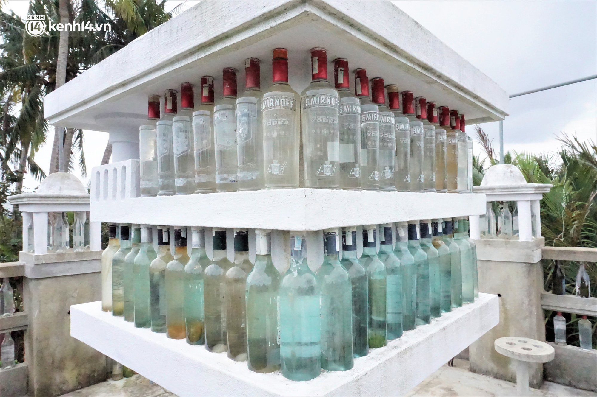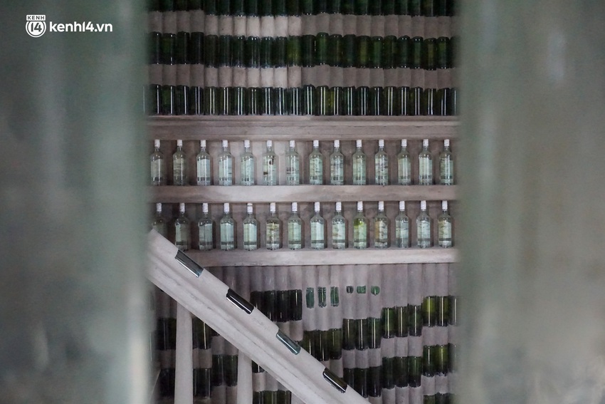 "Việc gắn chai đòi hỏi phải kiên trì, mỗi lần chỉ làm được khoảng 5 lớp chai là dừng, chờ cho xi măng gắn kết mới tiếp tục được. Nếu làm nhiều lớp quá, chai sẽ không chịu được và bị đổ, lúc đó coi như phải gắn lại từ đầu", ông Linh nói