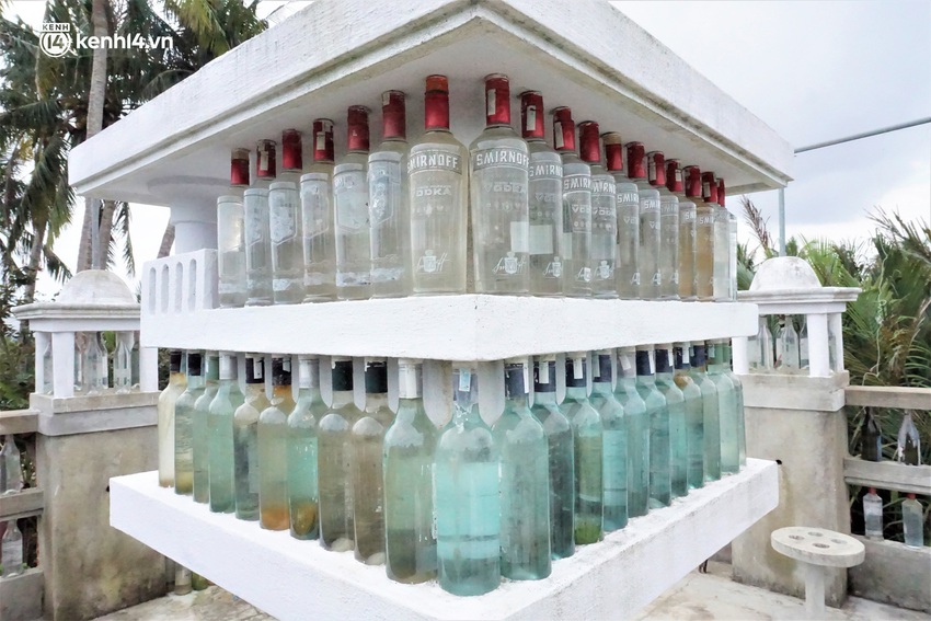 Để thực hiện ý tưởng độc đáo này, suốt 15 năm qua, ông Linh đã lặng lẽ đi nhặt vỏ chai về phân loại kích thước, màu sắc và cất trữ sau vườn
