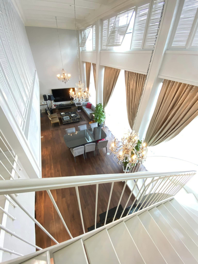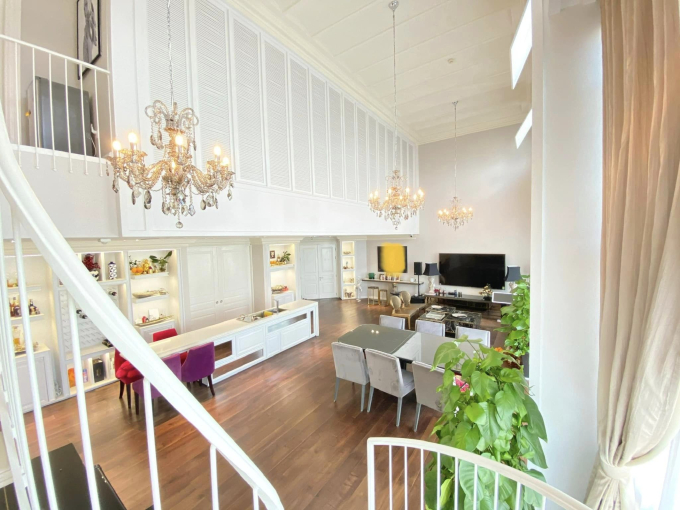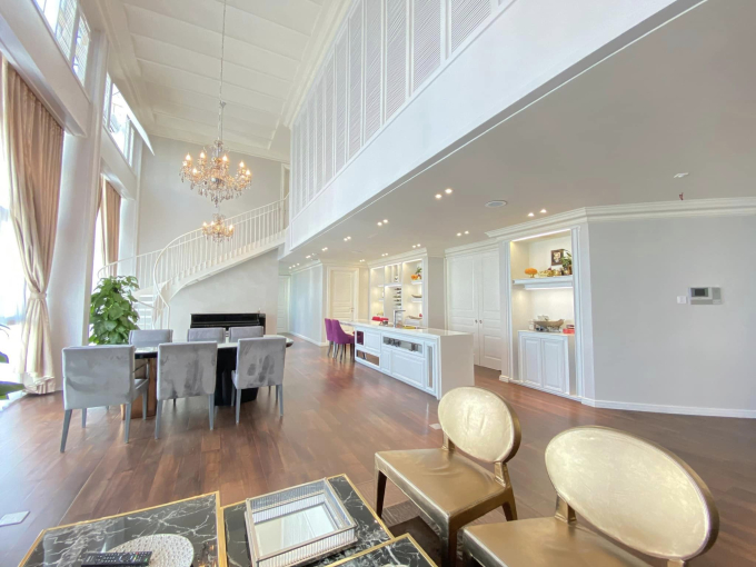 Căn penthouse này được thông tầng bởi 2 căn hộ và có tổng diện tích lên đến hơn 300m2. Tuy nhiên, nội thất lại không quá cầu kỳ mà thiên về sự đơn giản. Cô chủ yếu lựa chọn những món đồ thuộc tone màu trắng, xám, đen cho ngôi nhà