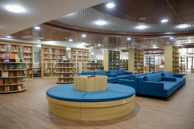 Thư viện của trường rộng khoảng 800m², có thể chứa tối đa 40.000 đầu sách