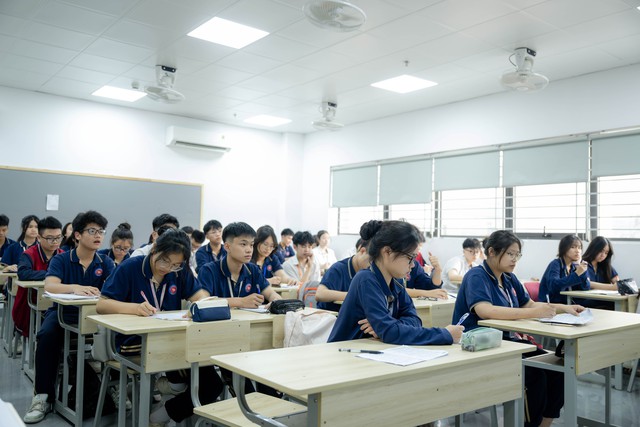 Về tuyển sinh, theo ông Nam, năm học 2025-2026, do thành lập muộn nên trường không nằm trong kế hoạch chung của Sở Giáo dục và Đào tạo, không tổ chức thi đầu vào mà tuyển sinh theo hình thức tràn tuyến với 418 học sinh. Sang năm học 2026-2027, trường sẽ tuyển sinh theo quy chế chung của thành phố với chỉ tiêu 10 lớp, tương đương 675 học sinh. Học sinh đăng ký nguyện vọng 1, 2, 3 và tham gia kỳ thi chung, điểm xét tuyển là tổng điểm các môn cộng với điểm ưu tiên, lấy từ cao xuống thấp đến khi đủ chỉ tiêu.