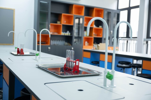 Nhà trường có hơn 10 phòng chức năng và phòng thí nghiệm với nhiều thiết bị hiện đại