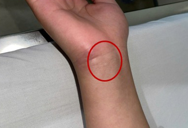Vết chuột cắn tại cổ tay của người bệnh nhiễm Sodoku.