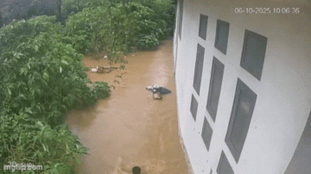 Trong ngày, mạng xã hội lan truyền đoạn clip từ camera an ninh ghi lại cảnh một cô gái bị nước lũ cuốn trôi khi cố di chuyển qua đoạn đường ngập sâu ở Mộc Châu. Dù đang mặc áo mưa vướng víu và bị dòng nước xiết cuốn đi, cô vẫn giữ khư khư hai chiếc túi được cho là đựng máy tính bên trong.