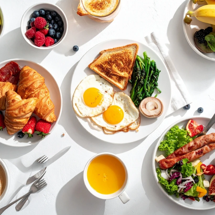 Bữa sáng: Nhất định phải ăn, ưu tiên kết hợp tinh bột và protein để kích hoạt trao đổi chất và kiểm soát cơn thèm ăn.