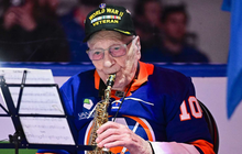 Ông Dominick Critelli vẫn có thể chơi nhạc cụ khi đã 104 tuổi. Ảnh: YouTube.
